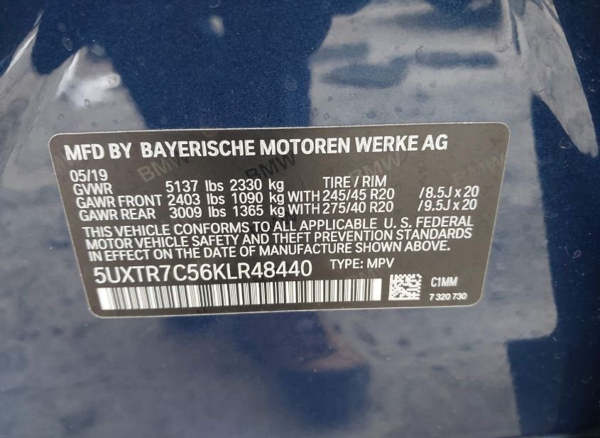 - VIN: 5UXTR7C56KLR48440