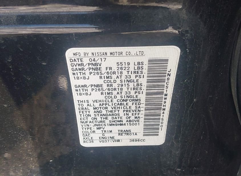 - VIN: JN8CS1MW9HM415001