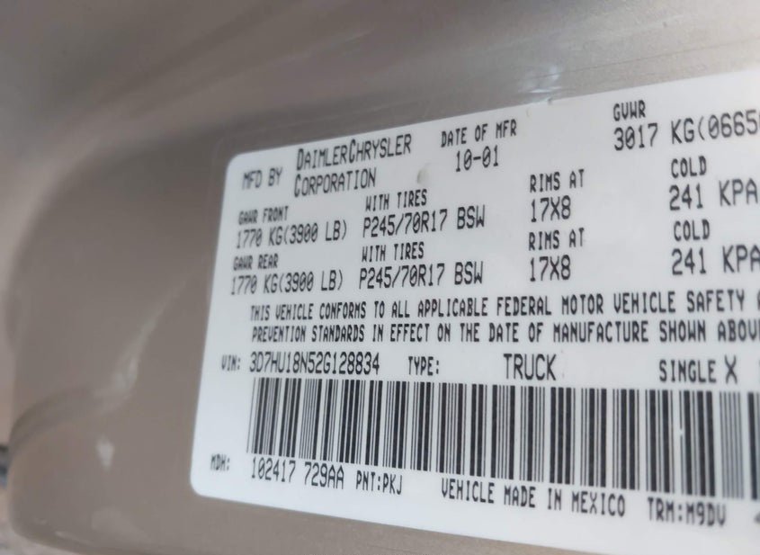 - VIN: 3D7HU18N52G128834