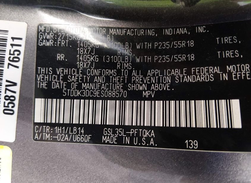 - VIN: 5TDDK3DC9ES088570