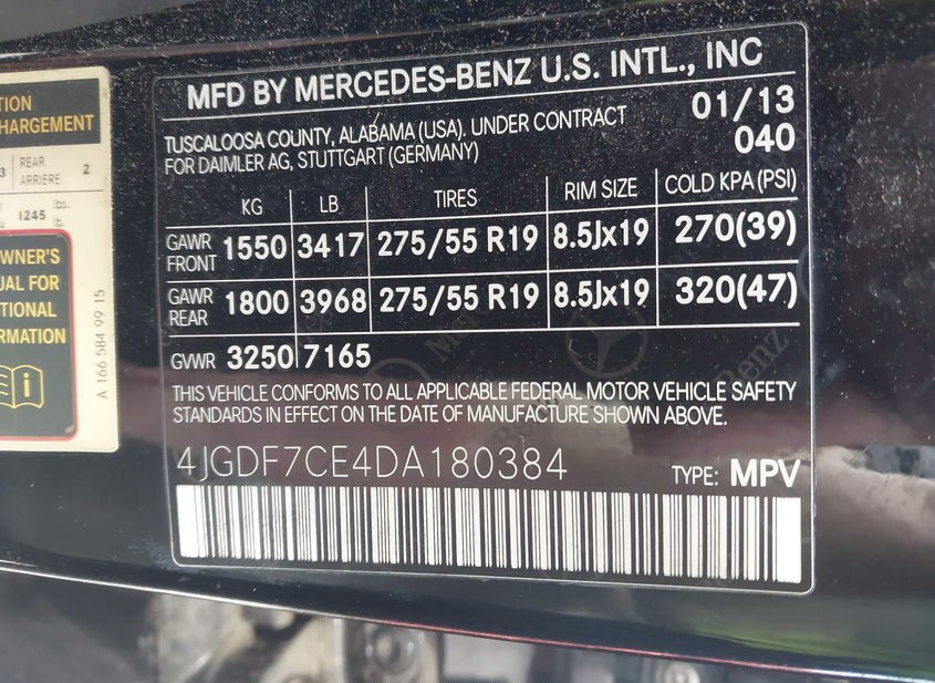 - VIN: 4JGDF7CE4DA180384