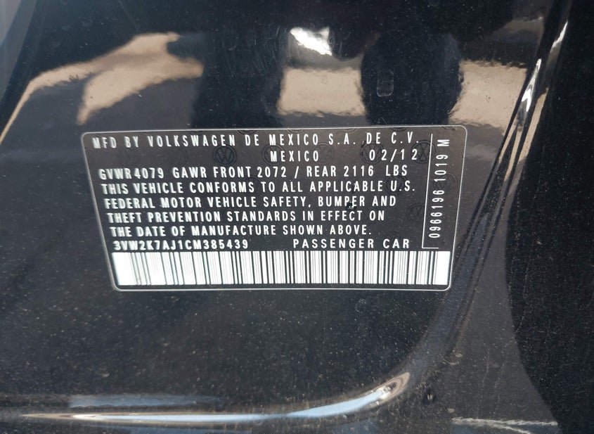 - VIN: 3VW2K7AJ1CM385439