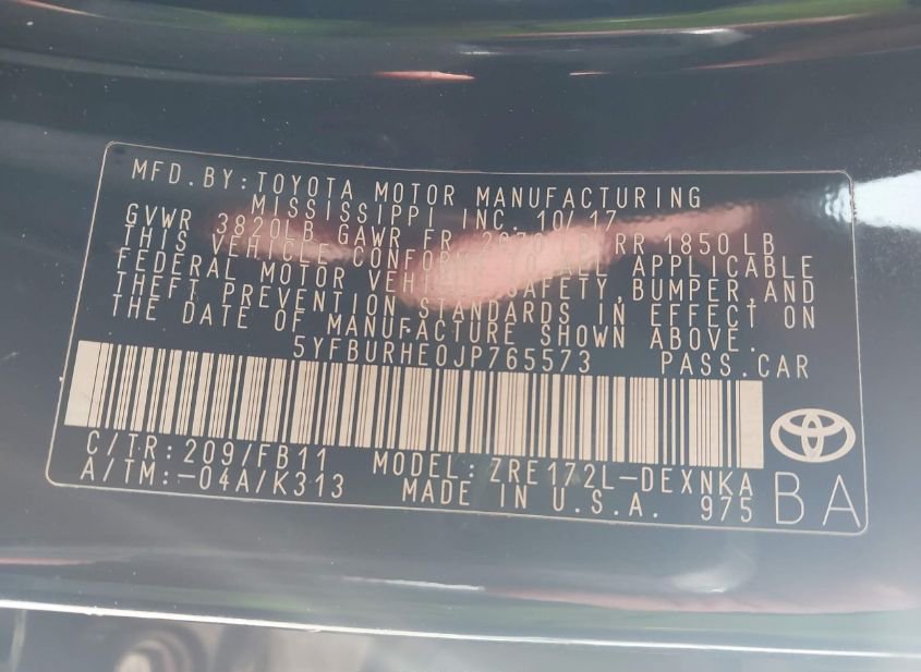 - VIN: 5YFBURHE0JP765573