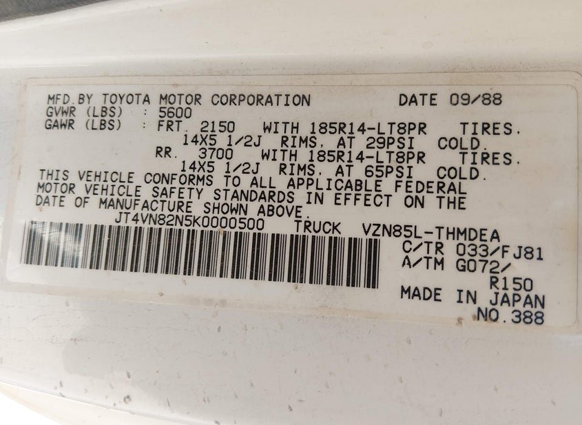 - VIN: JT4VN82N5K0000500