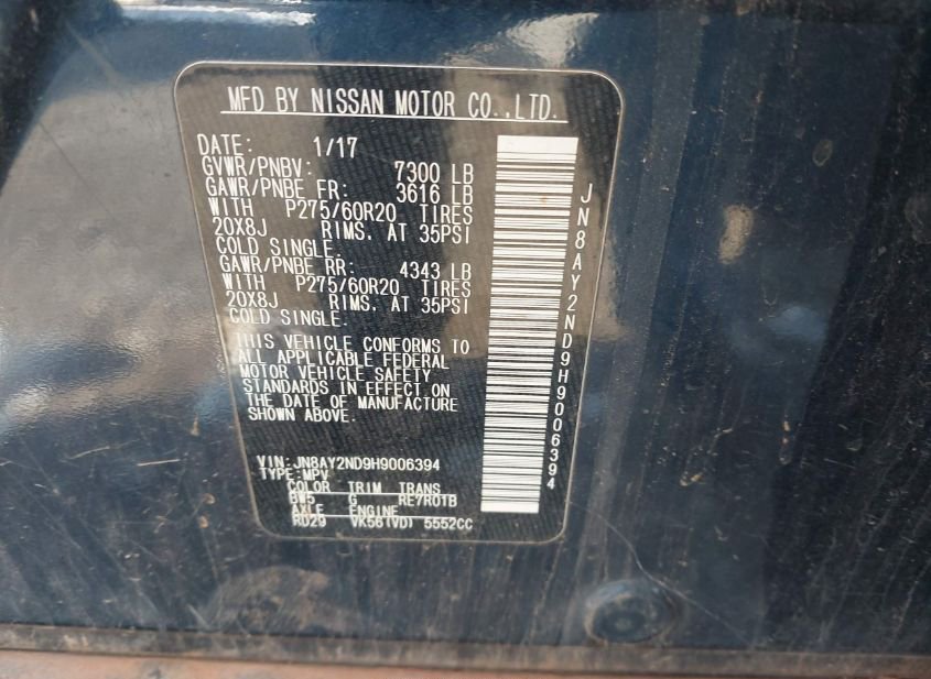 - Название лота: 2017 NISSAN ARMADA SL