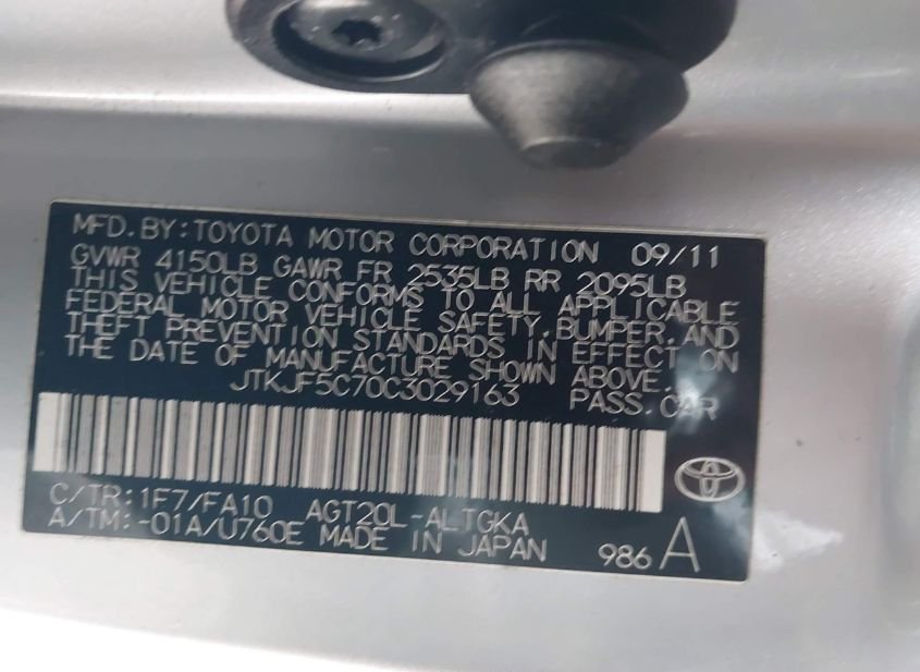 - VIN: JTKJF5C70C3029163