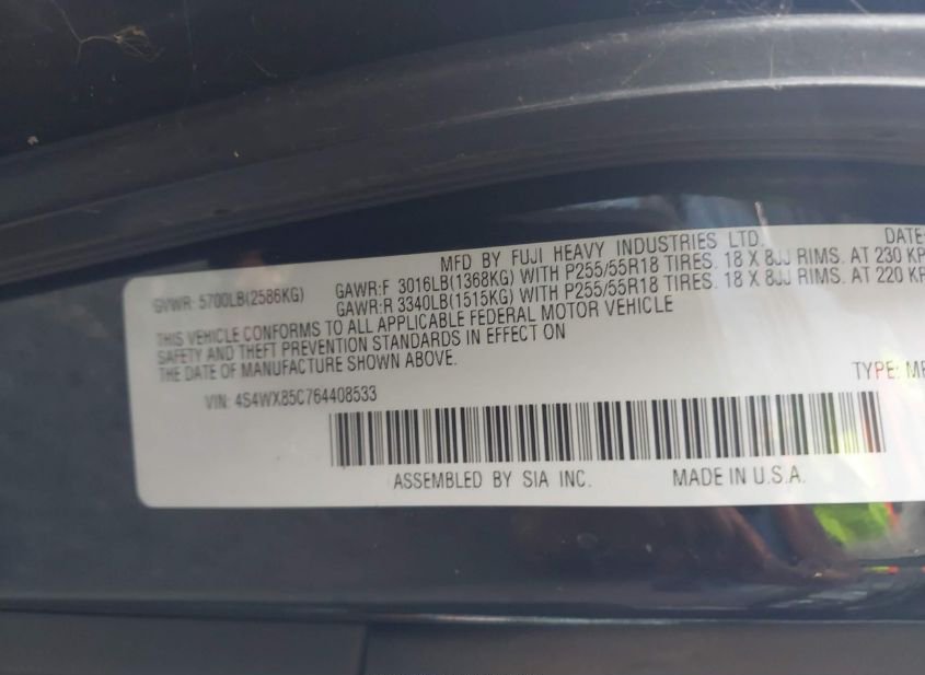 - VIN: 4S4WX85C764408533