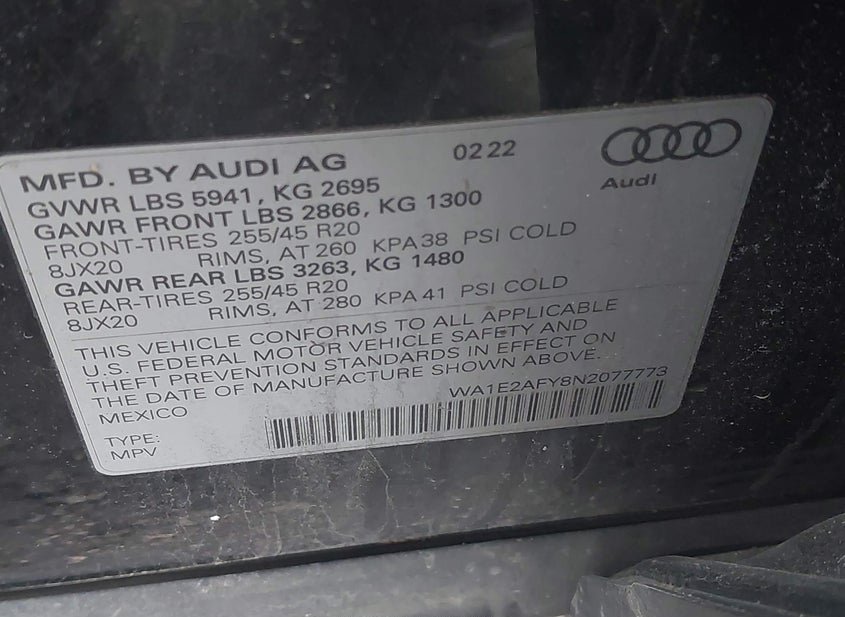 - VIN: WA1E2AFY8N2077773