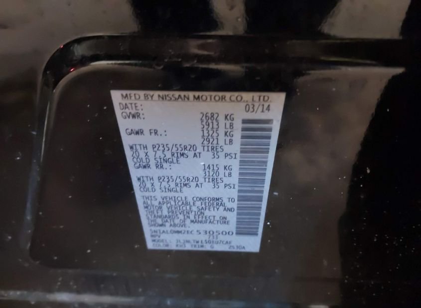 - VIN: 5N1AL0MM2EC530500