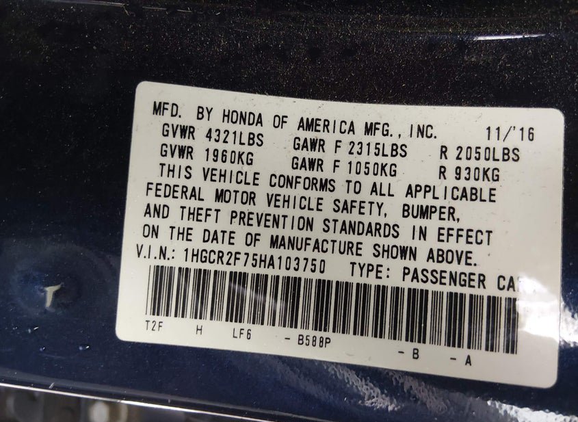 - VIN: 1HGCR2F75HA103750