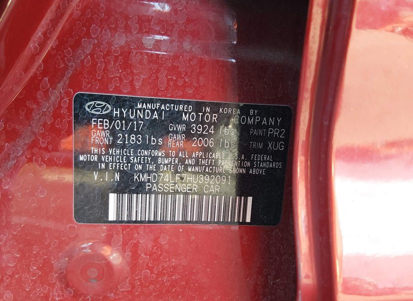 - VIN: KMHD74LF7HU392091