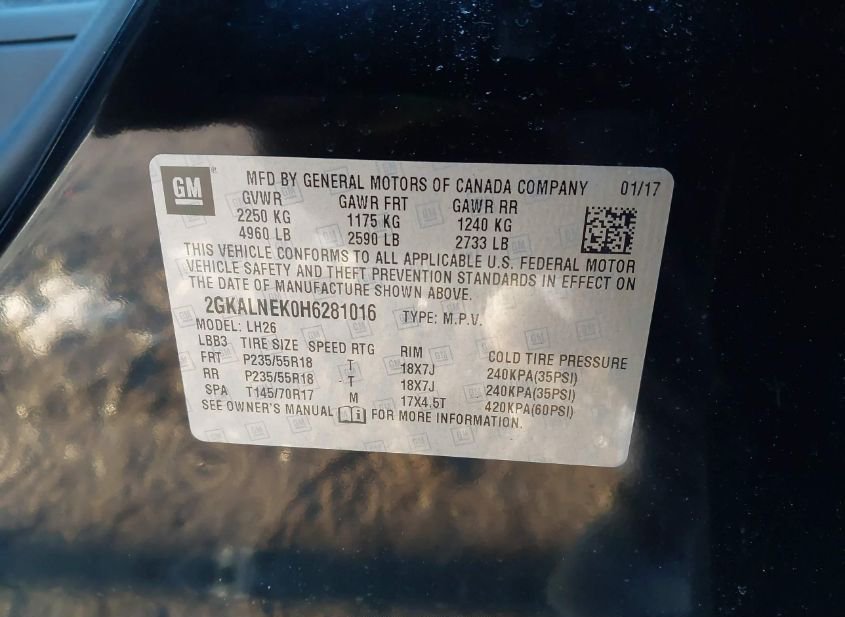 - VIN: 2GKALNEK0H6281016