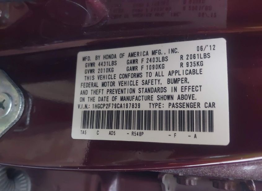 - VIN: 1HGCP2F79CA197839