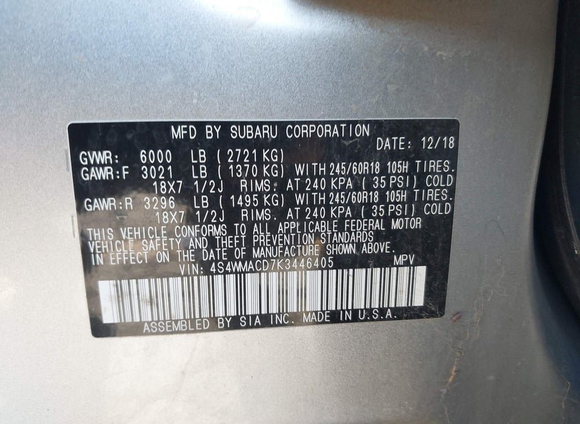- Название лота: 2019 SUBARU ASCENT PREMIUM