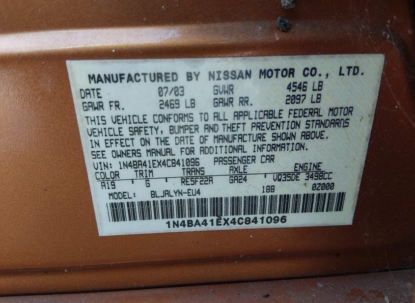 - VIN: 1N4BA41EX4C841096