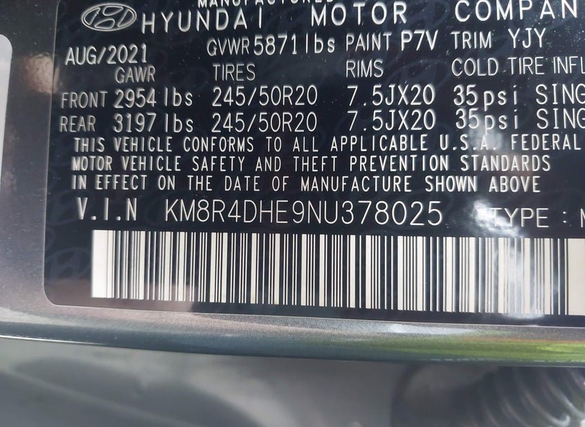 - VIN: KM8R4DHE9NU378025