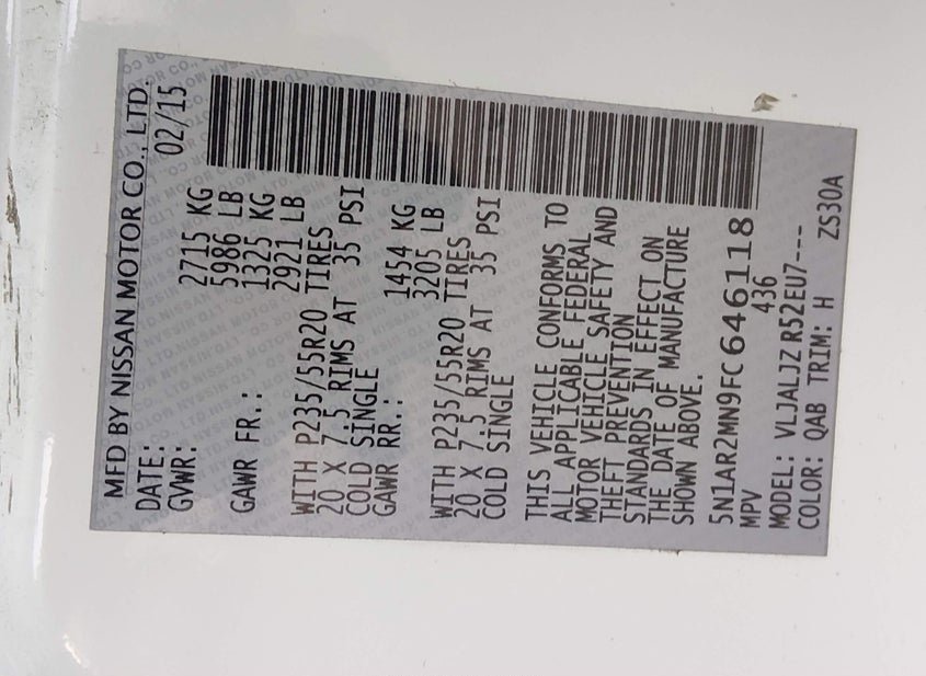 - VIN: 5N1AR2MN9FC646118