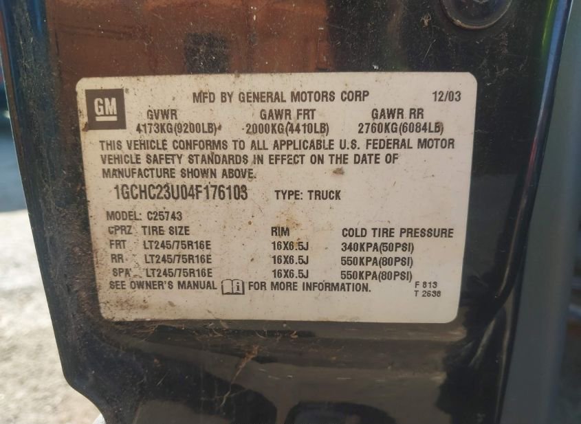 - VIN: 1GCHC23U04F176103