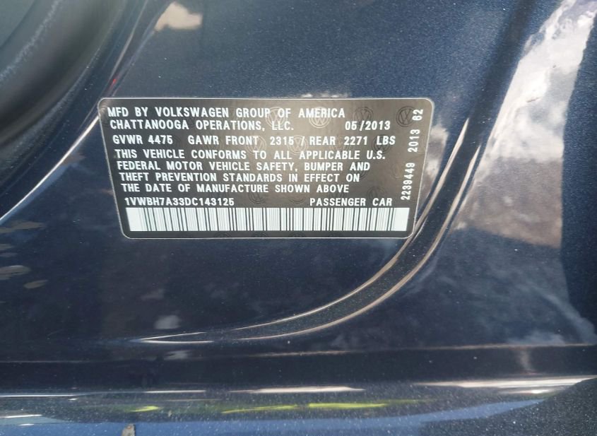 - VIN: 1VWBH7A33DC143125