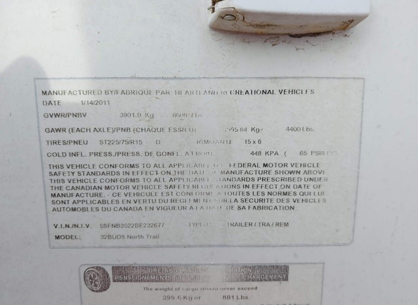 - Название лота: 2011 HEARTLAND RV 32BUDS NORTH TRAIL