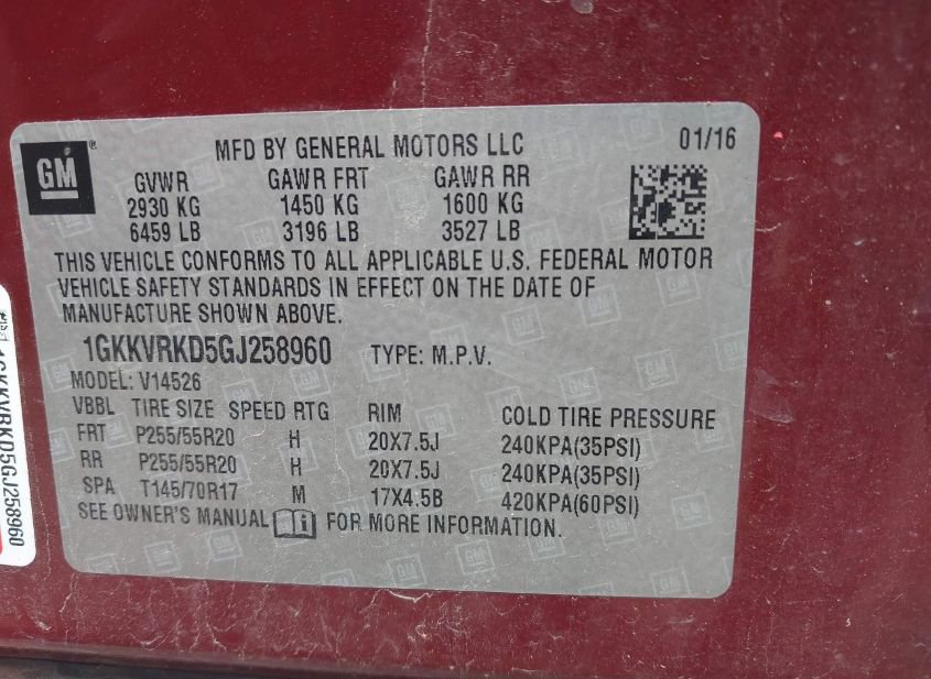 - VIN: 1GKKVRKD5GJ258960