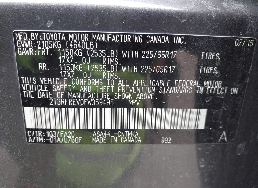 - VIN: 2T3RFREV0FW359495