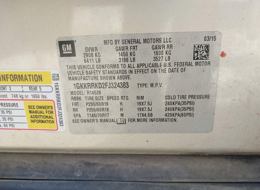 - VIN: 1GKKRRKD2FJ324383