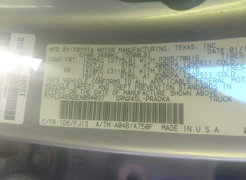 - VIN: 5TFLU4EN2EX094037