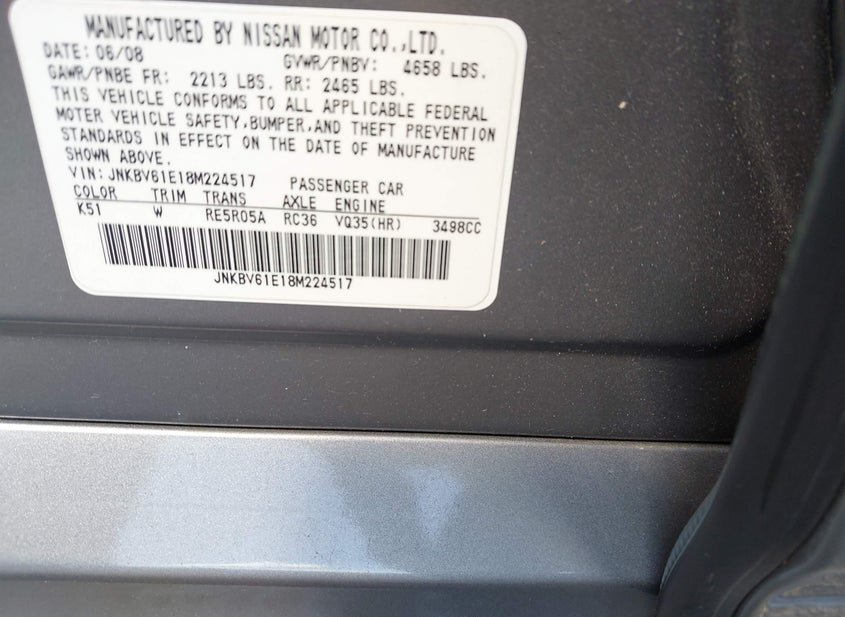 - Название лота: 2008 INFINITI G35 JOURNEY
