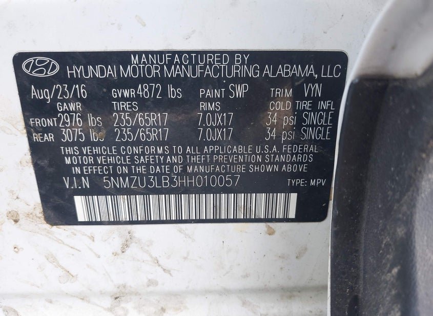 - VIN: 5NMZU3LB3HH010057