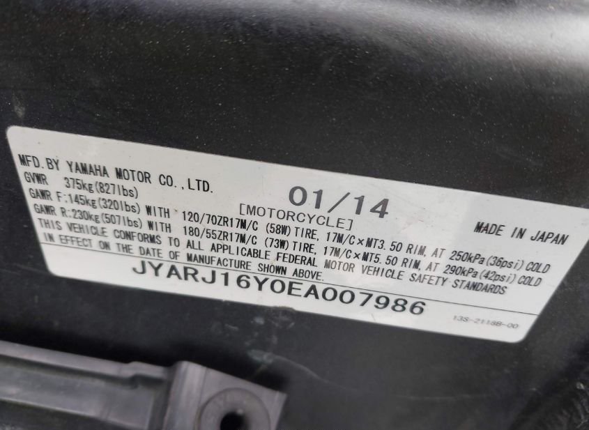 - VIN: JYARJ16Y0EA007986