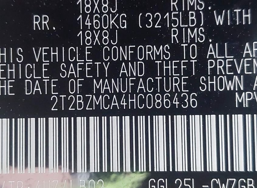 - VIN: 2T2BZMCA4HC086436