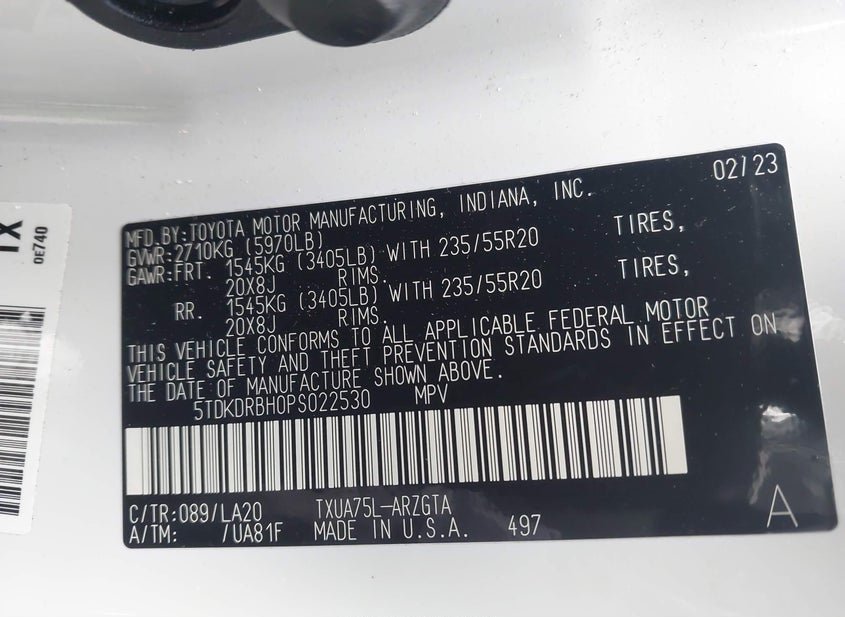 - VIN: 5TDKDRBH0PS022530