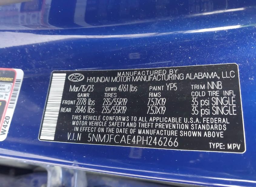 - VIN: 5NMJFCAE4PH246266