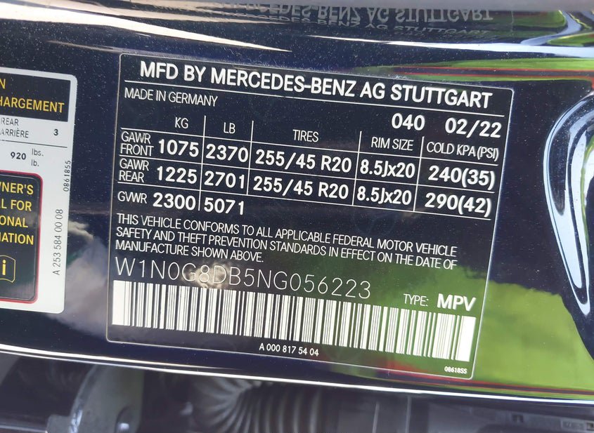 - VIN: W1N0G8DB5NG056223
