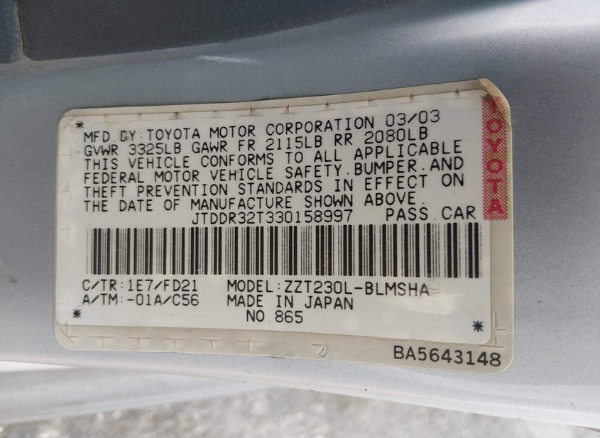 - Название лота: 2003 TOYOTA CELICA GT