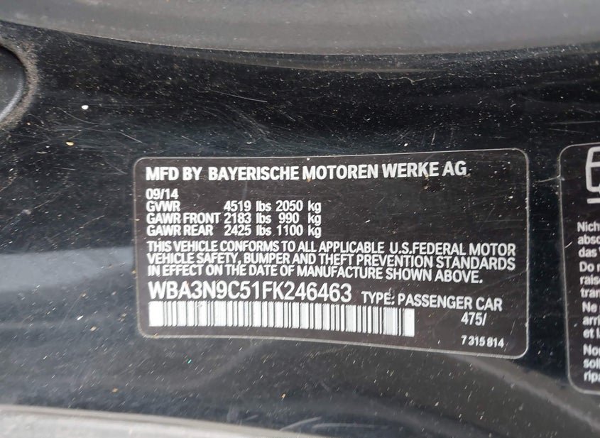 - VIN: WBA3N9C51FK246463