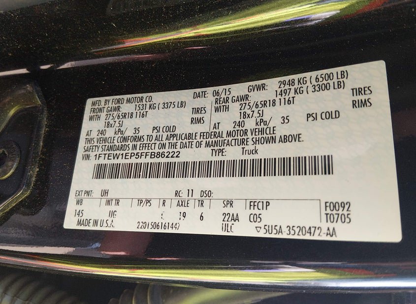 - VIN: 1FTEW1EP5FFB86222