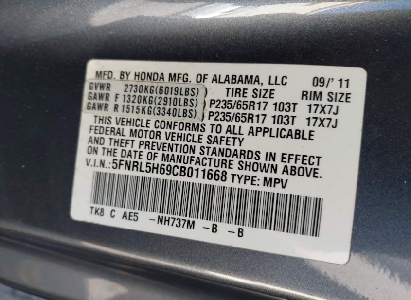 - VIN: 5FNRL5H69CB011668