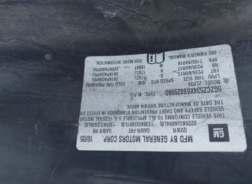 - VIN: 5GZCZ534X6S829880