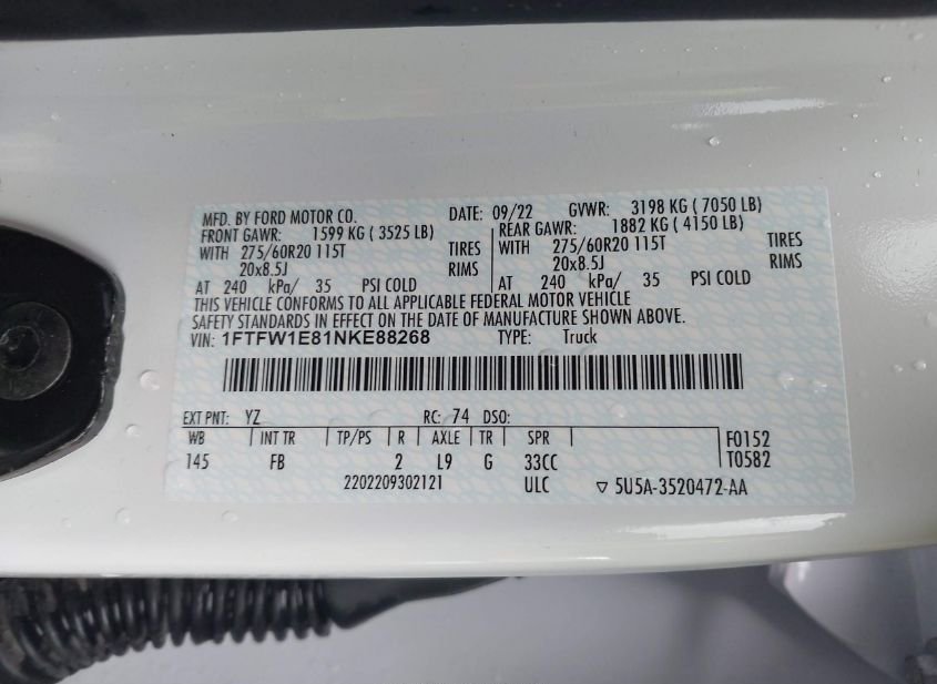 - VIN: 1FTFW1E81NKE88268