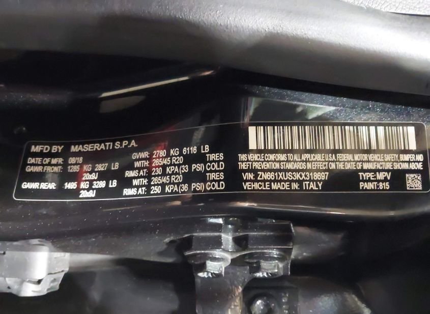 - Название лота: 2019 MASERATI LEVANTE GRANSPORT