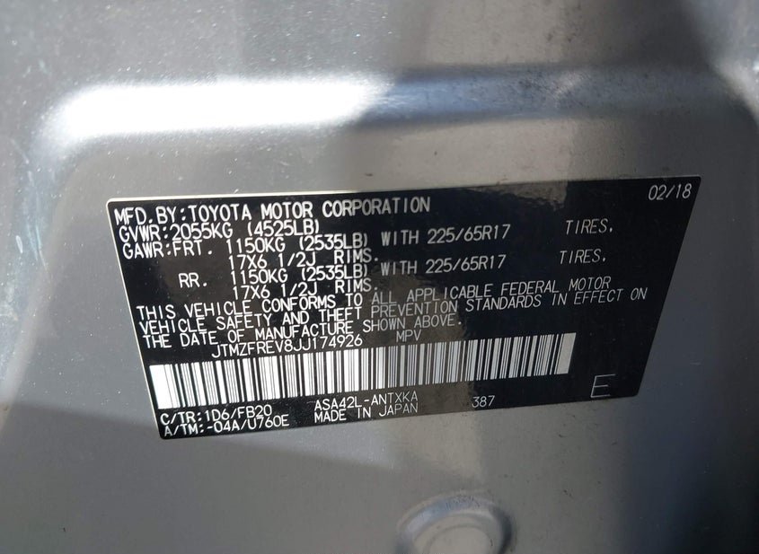 - VIN: JTMZFREV8JJ174926
