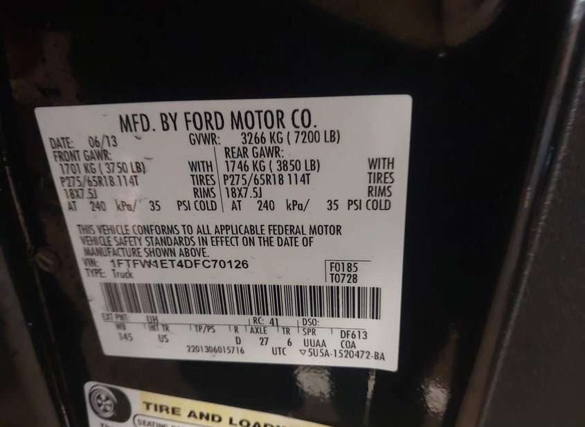 - VIN: 1FTFW1ET4DFC70126
