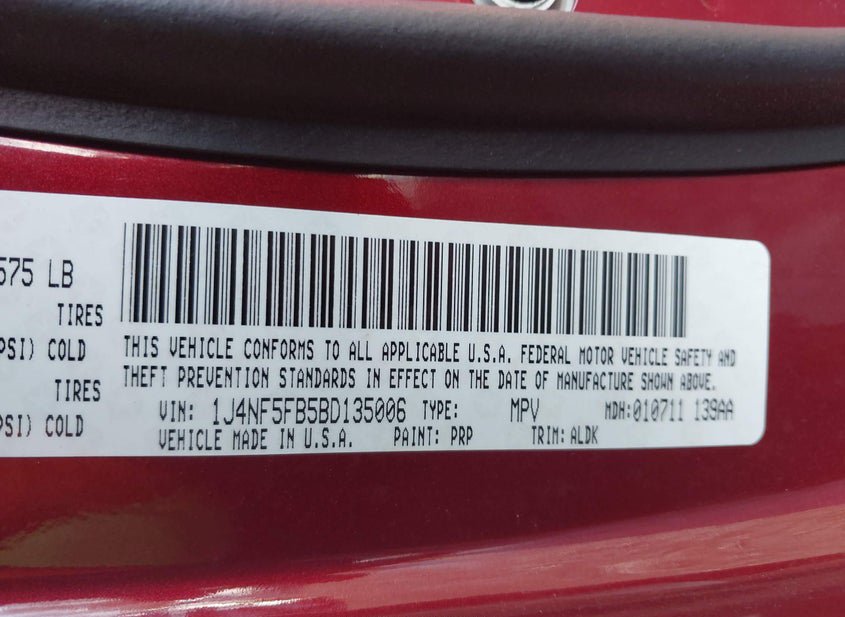 - VIN: 1J4NF5FB5BD135006