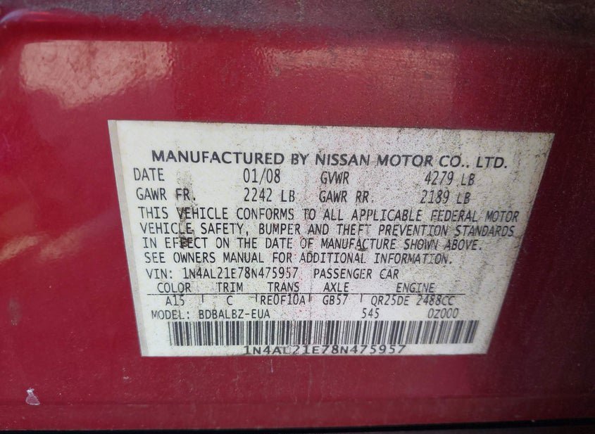 - VIN: 1N4AL21E78N475957