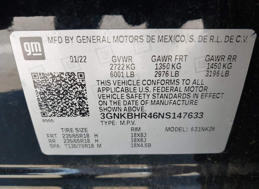 - VIN: 3GNKBHR46NS147633