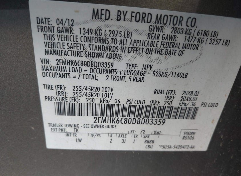 - VIN: 2FMHK6C80DBD03359