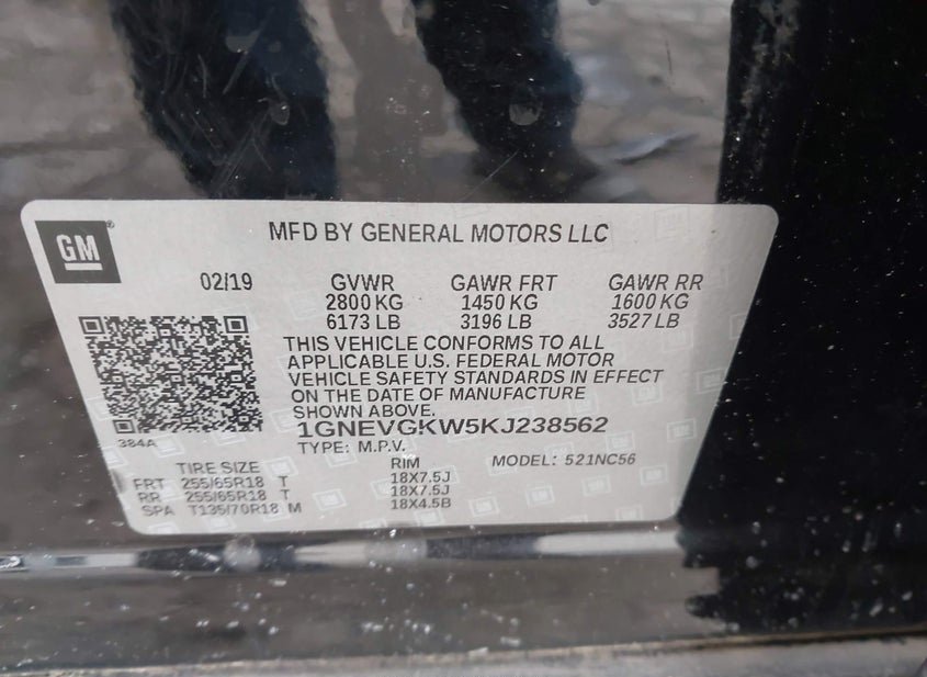 - VIN: 1GNEVGKW5KJ238562