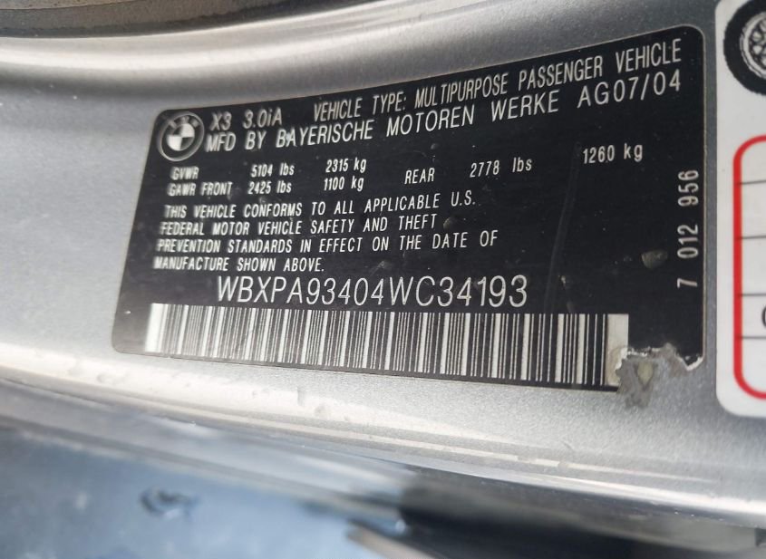 2004 BMW X3 3.0I